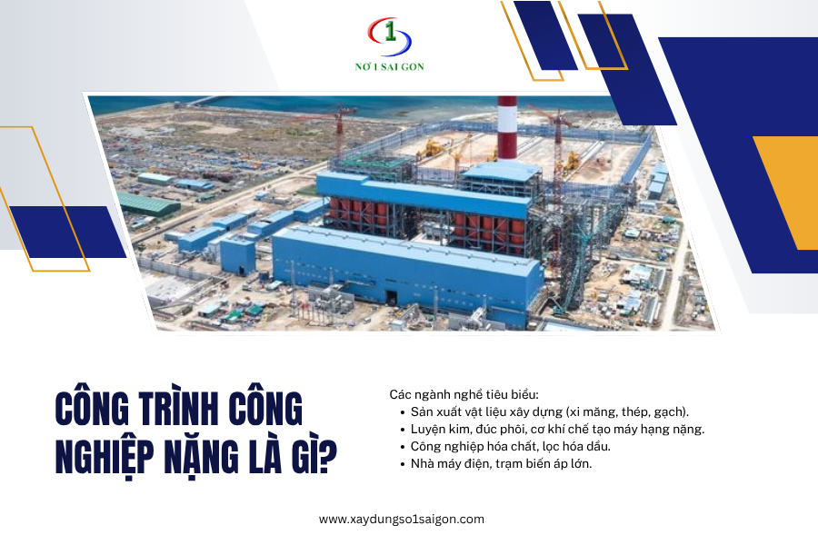 Công trình công nghiệp nặng là những nhà máy, nhà xưởng chứa đựng các thiết bị, máy móc có tải trọng cực lớn, quy trình sản xuất phức tạp, và thường có các yếu tố kỹ thuật đặc thù như nhiệt độ cao, hóa chất độc hại, hay yêu cầu về phòng chống rung lắc mạnh.