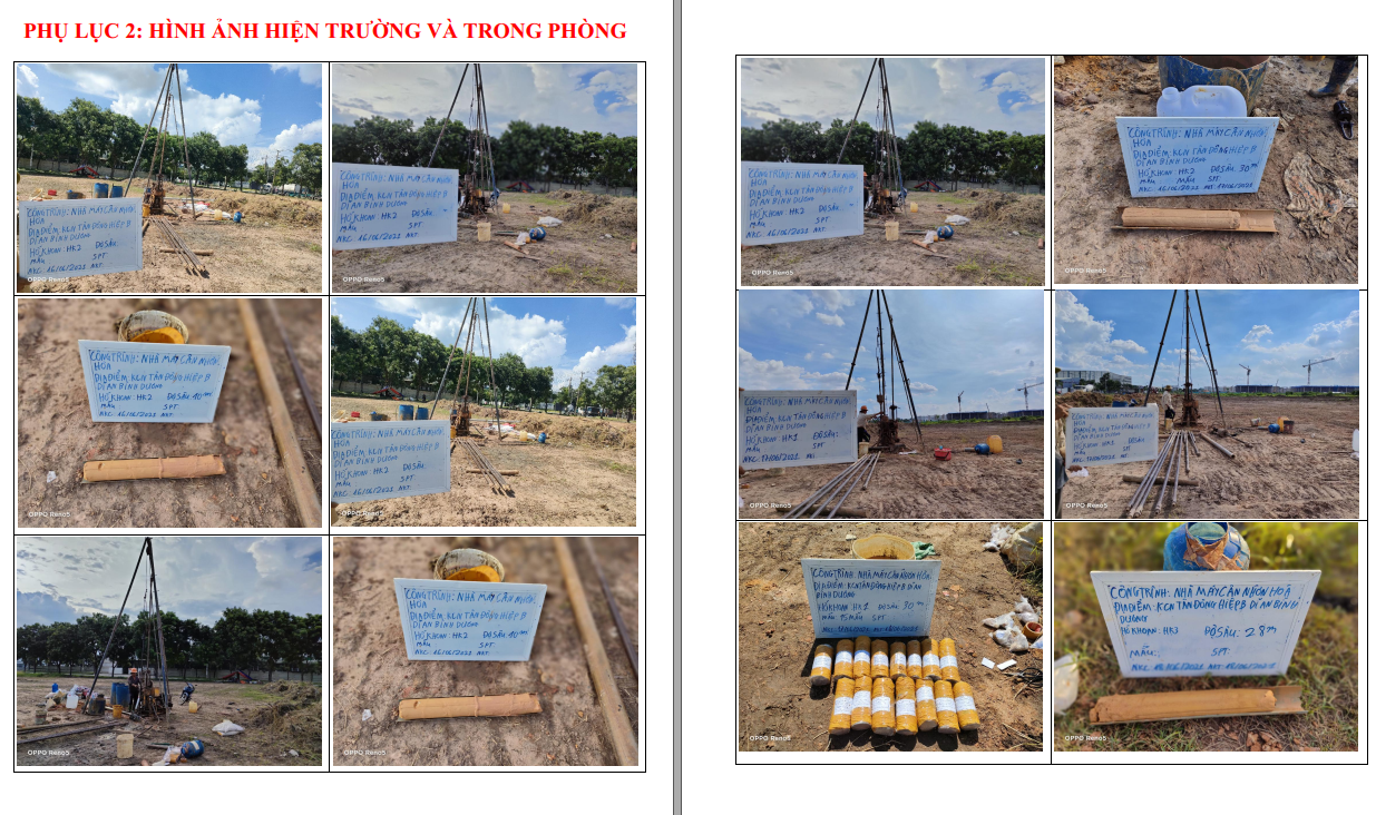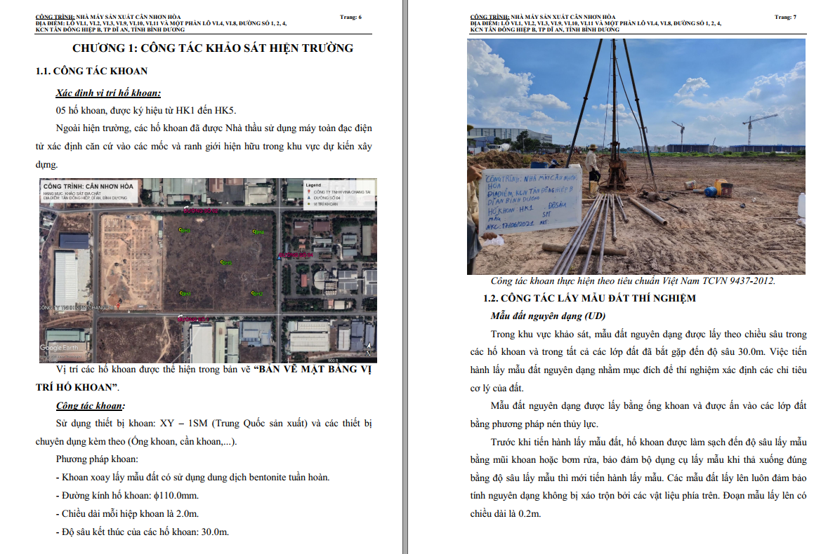 Khoan 05 hố khoan để lấy mẫu đất, mỗi hố khoan sâu 30.0m với tổng độ sâu 150.0m.