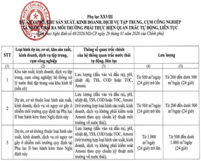 • Đối tượng tại Cột 2 với mức lưu lượng tại Cột 5 Phụ lục XXVIII thực hiện quan trắc nước thải tự động, liên tục hoặc định kỳ.