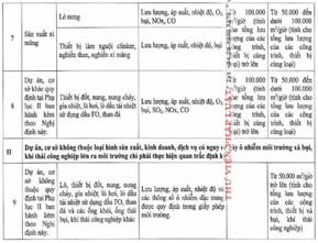 • Mức lượng xả bụi, khí thải công nghiệp rất lớn của dự án thuộc loại hình sản xuất, kinh doanh có nguy cơ gây ô nhiễm môi trường tại số thứ tự từ 1 đến 8 Cột 5 Phụ lục XXIX;